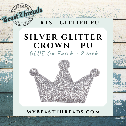 $5FBF DEAL - Silver Glitter Crown GLUE ON Patch 50 pc Bag - RTS