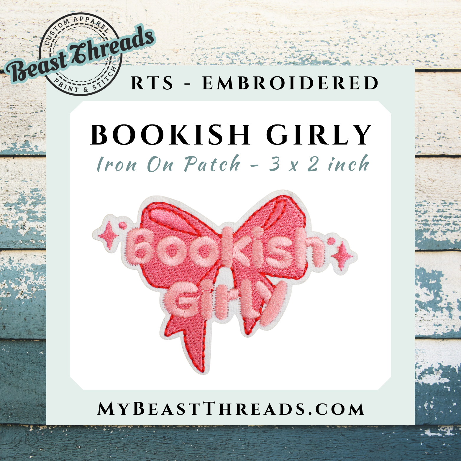Add a sweet and clever touch to your style with the Bookish Girly bow embroidered patch! Featuring a charming bow and a nod to your love of reading, this playful patch is perfect for brightening up hats, bags, or jackets.