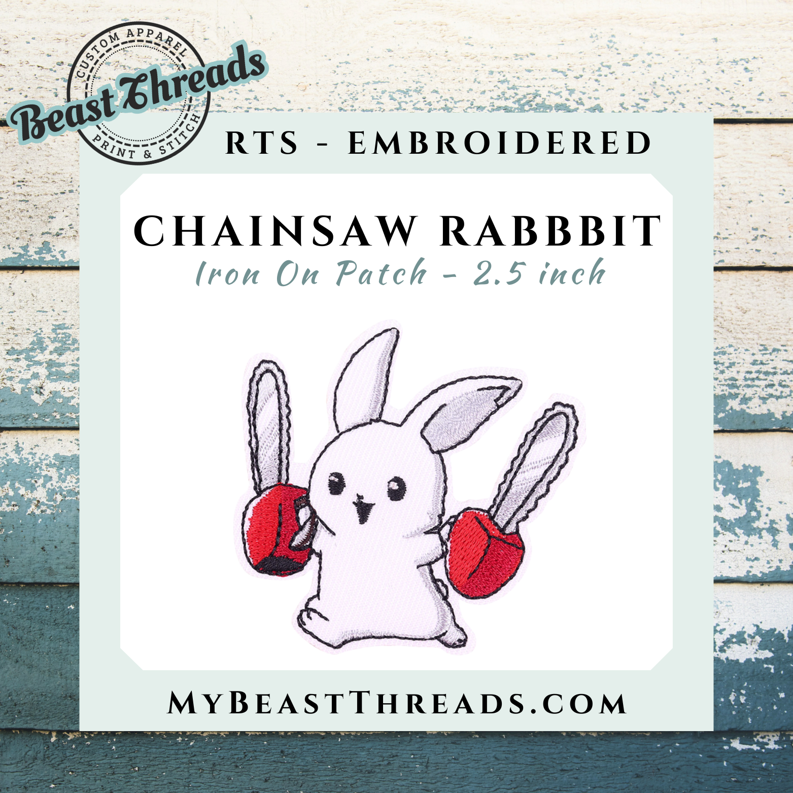 Chainsaw Rabbit Embroidered Patch- RTS