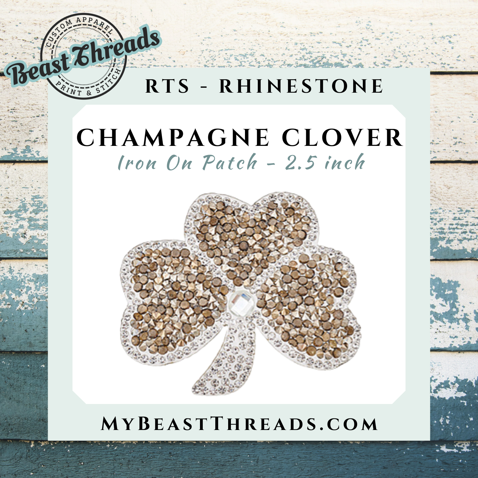 Add a sparkling touch to your style with the Champagne Clover Rhinestone Patch! This playful patch features shimmering rhinestones arranged in a lucky clover shape, perfect for brightening up jackets, bags, or hats. Ready to ship now!