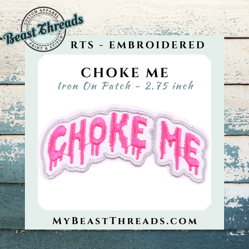 Add a cheeky twist to your gear with the Choke Me Embroidered Patch! This playful patch brings a bold, fun vibe to any jacket, bag, or hat. Ready to ship now!