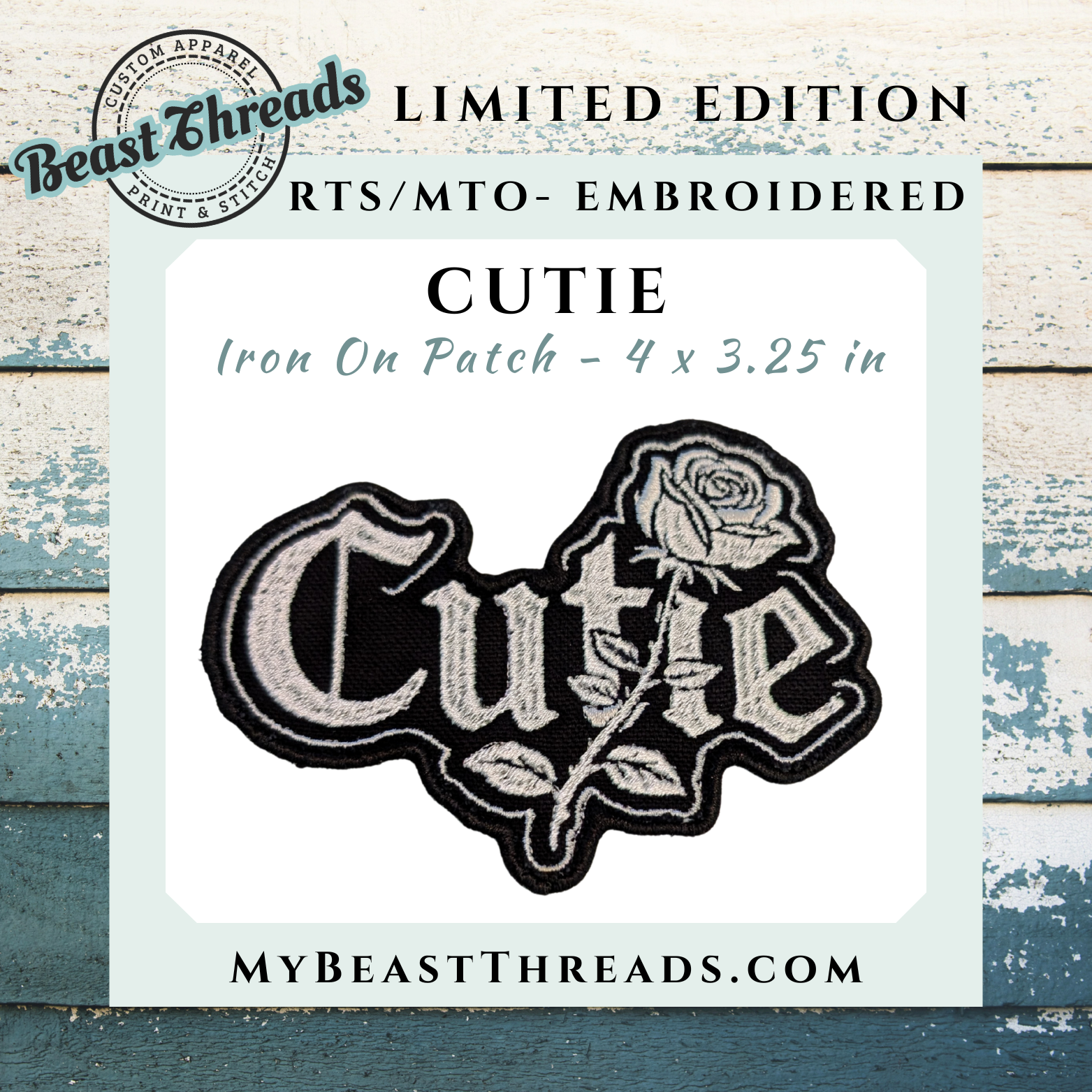 Add a splash of charm to your outfit with the Cutie Embroidered Patch hat featuring a vibrant rose in classic tattoo style. This playful accessory blends bold stitching with a fun, edgy vibe—perfect for brightening up your look while keeping it cool and casual. Available in limited quantities as Ready to Ship and larger orders are Made to Order.