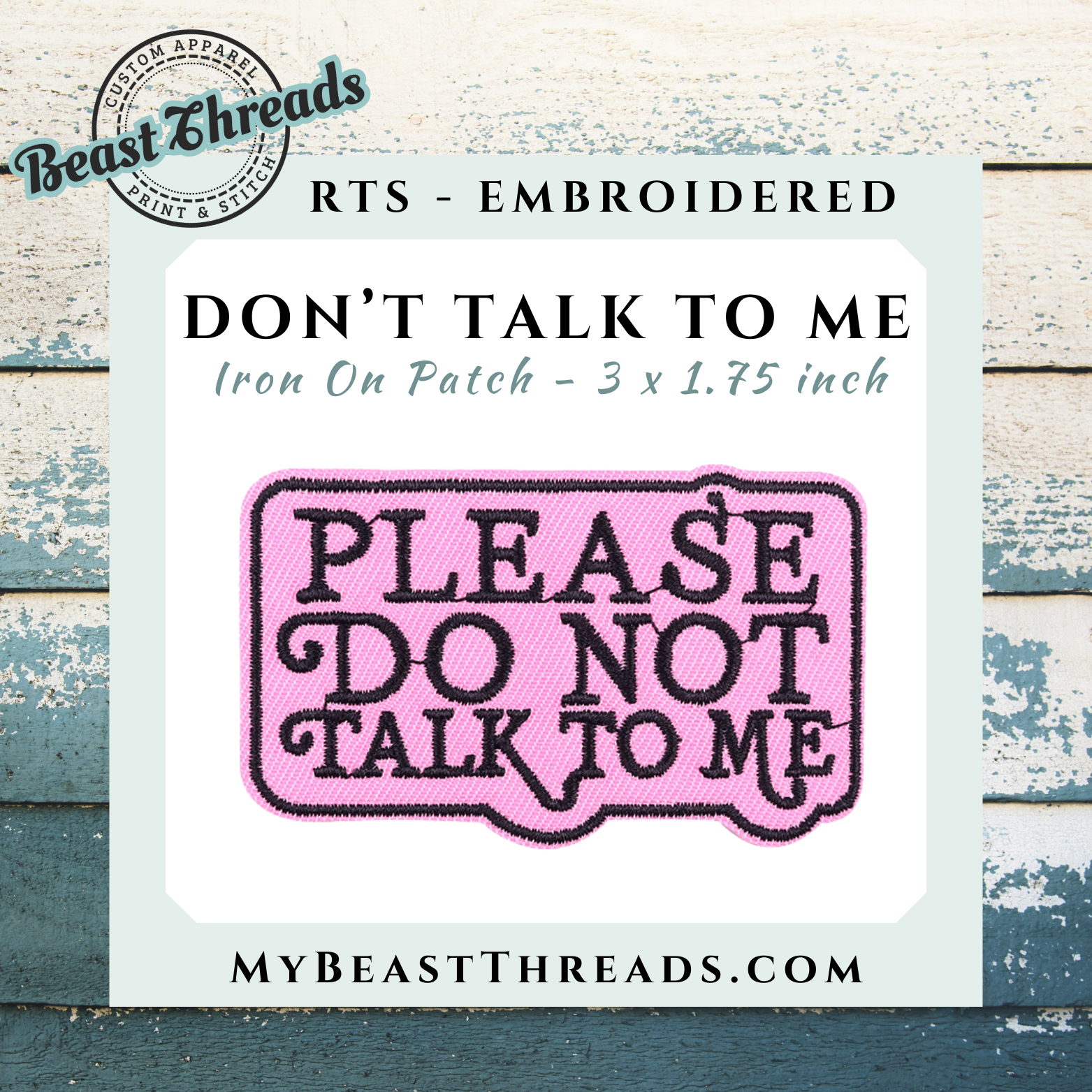 Make your mood clear with the playful "Don't Talk to Me" embroidered patch. Perfect for hats, jackets, or bags, this patch adds a cheeky touch to your style while letting everyone know when you need some space. Ready to ship now!