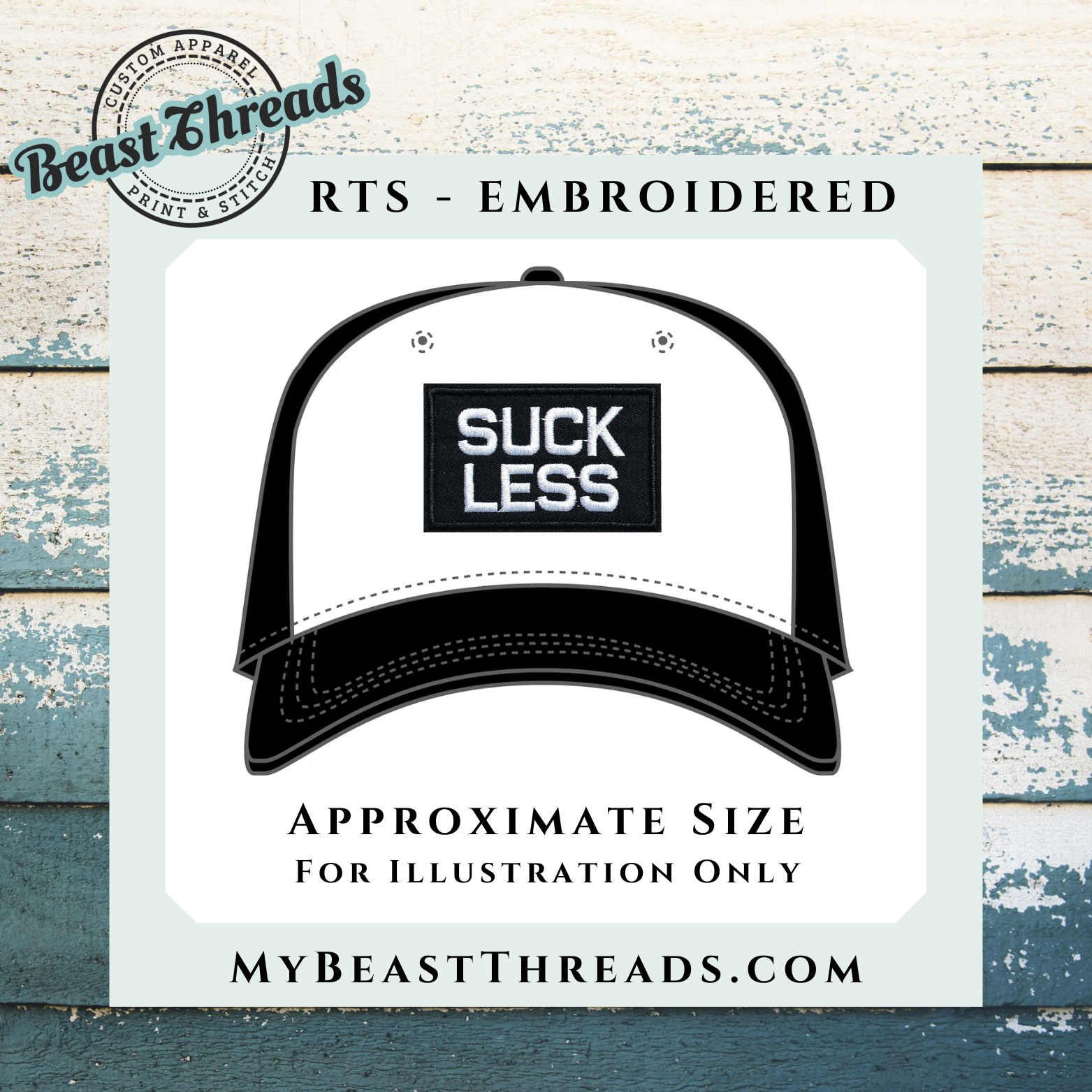 Give your style a cheeky upgrade with the Suck Less embroidered patch! This playful patch adds a bold, humorous vibe to your hats, bags, or jackets.